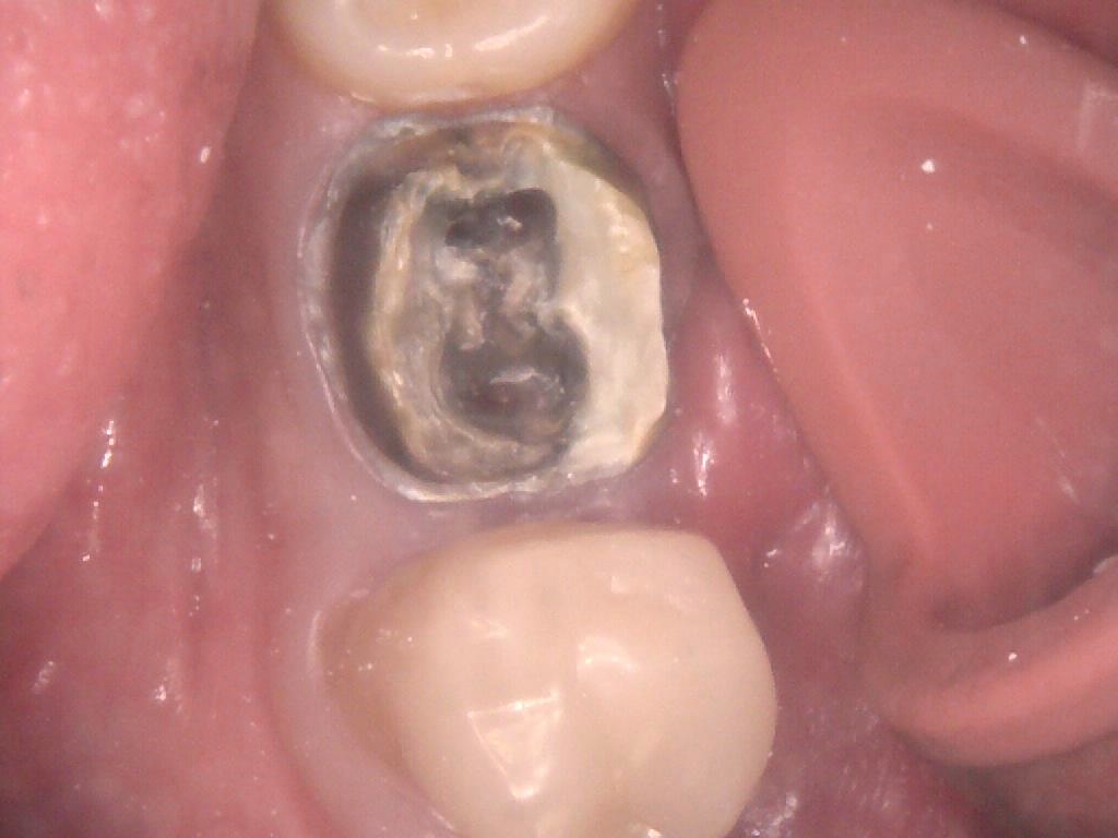 虫歯は顕微鏡単位ではわかりません。マイクロスコープを保有する歯科医院ですが、今の治療では全く使われていませんので。元々メタルクラウンだったのでその着色の黒ずみはあります。