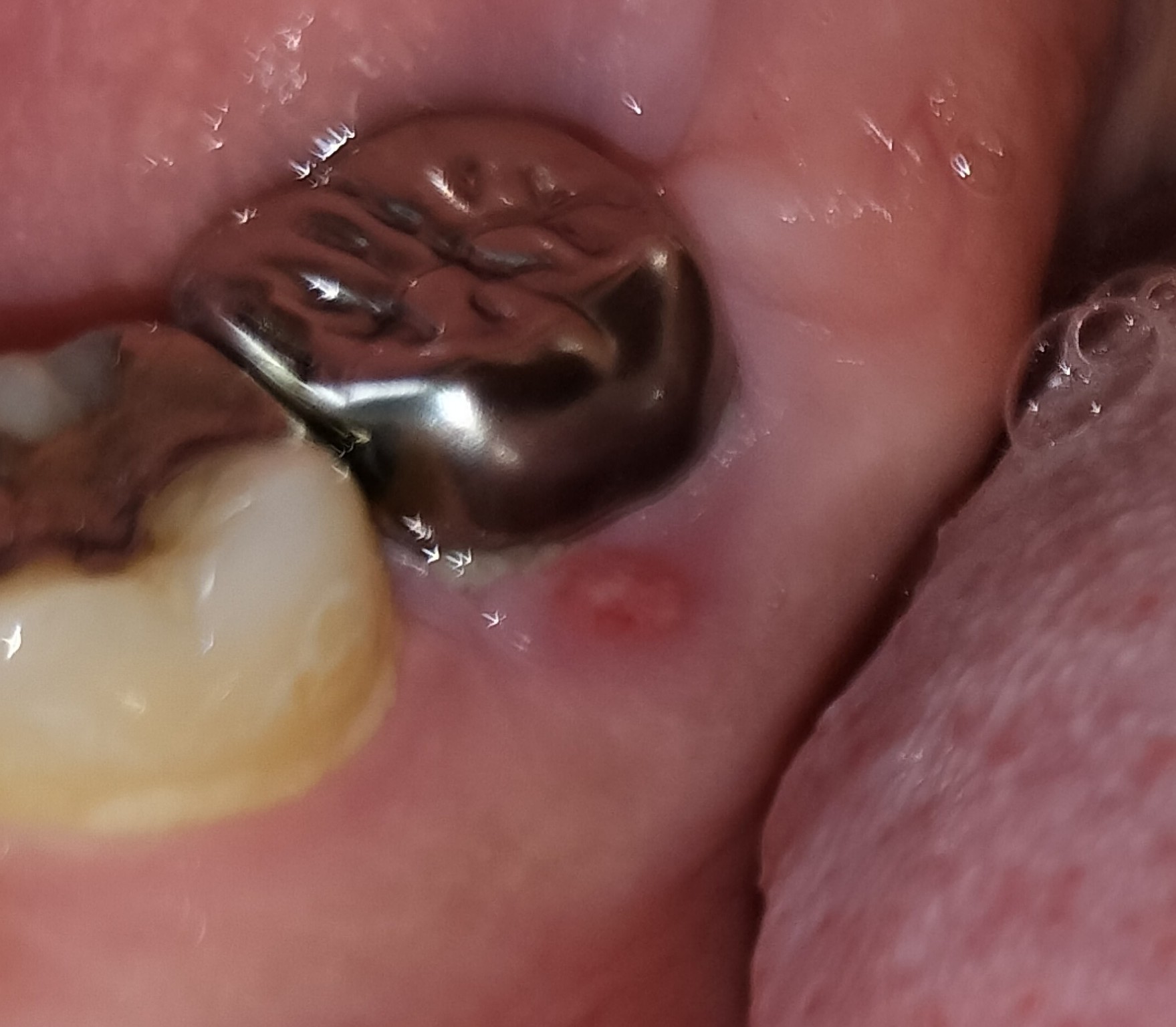 右下の1番奥の歯の内側に口内炎のような出来物が3週間消えない |
