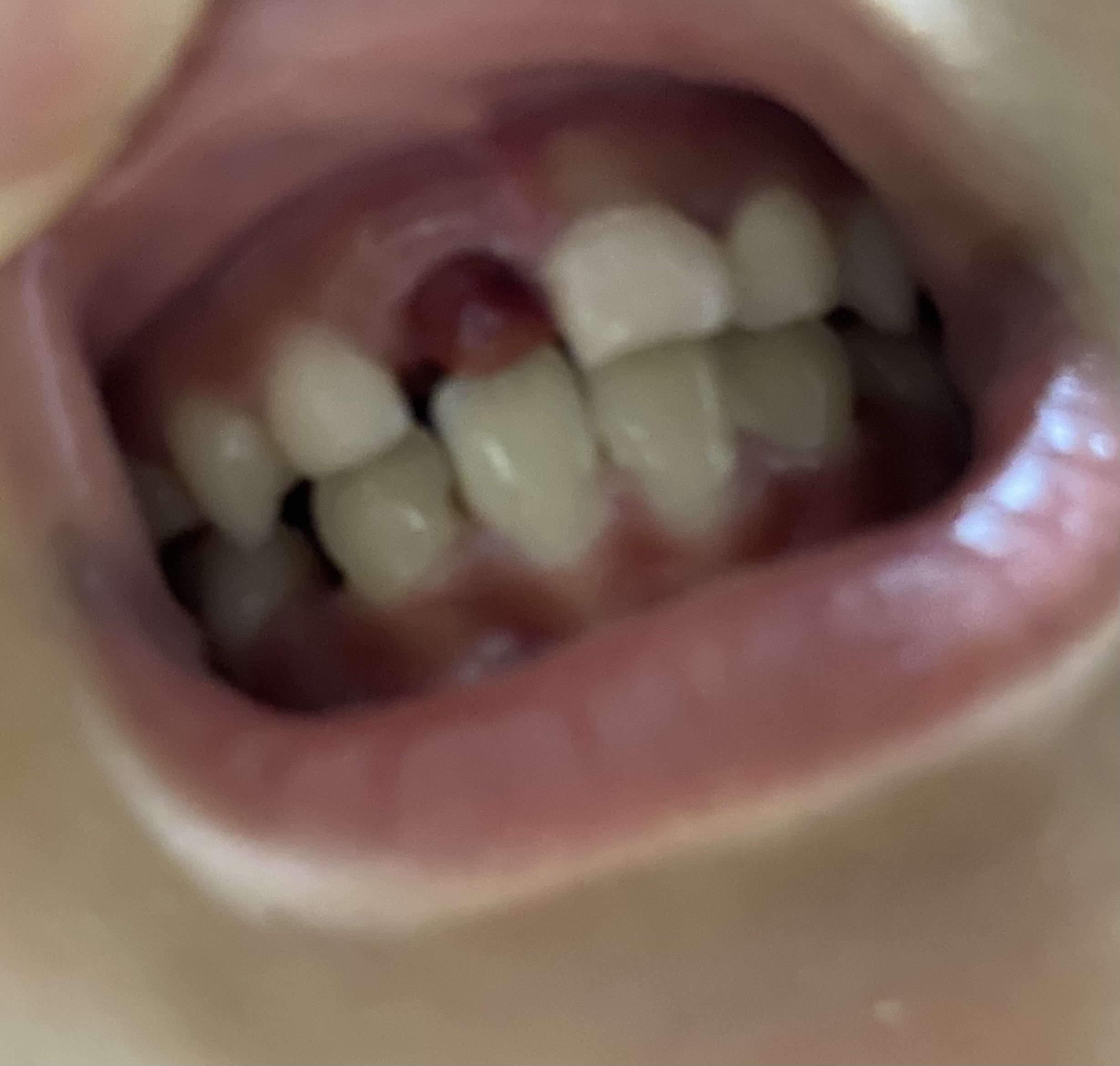 子どもの乳歯が抜けましたが、前歯に血の塊?がずっとついたままで、歯の型にも似ているため、永久歯が生えているのかと思いましたが、柔らかく揺れているため、不安です。ご回答お願いします。