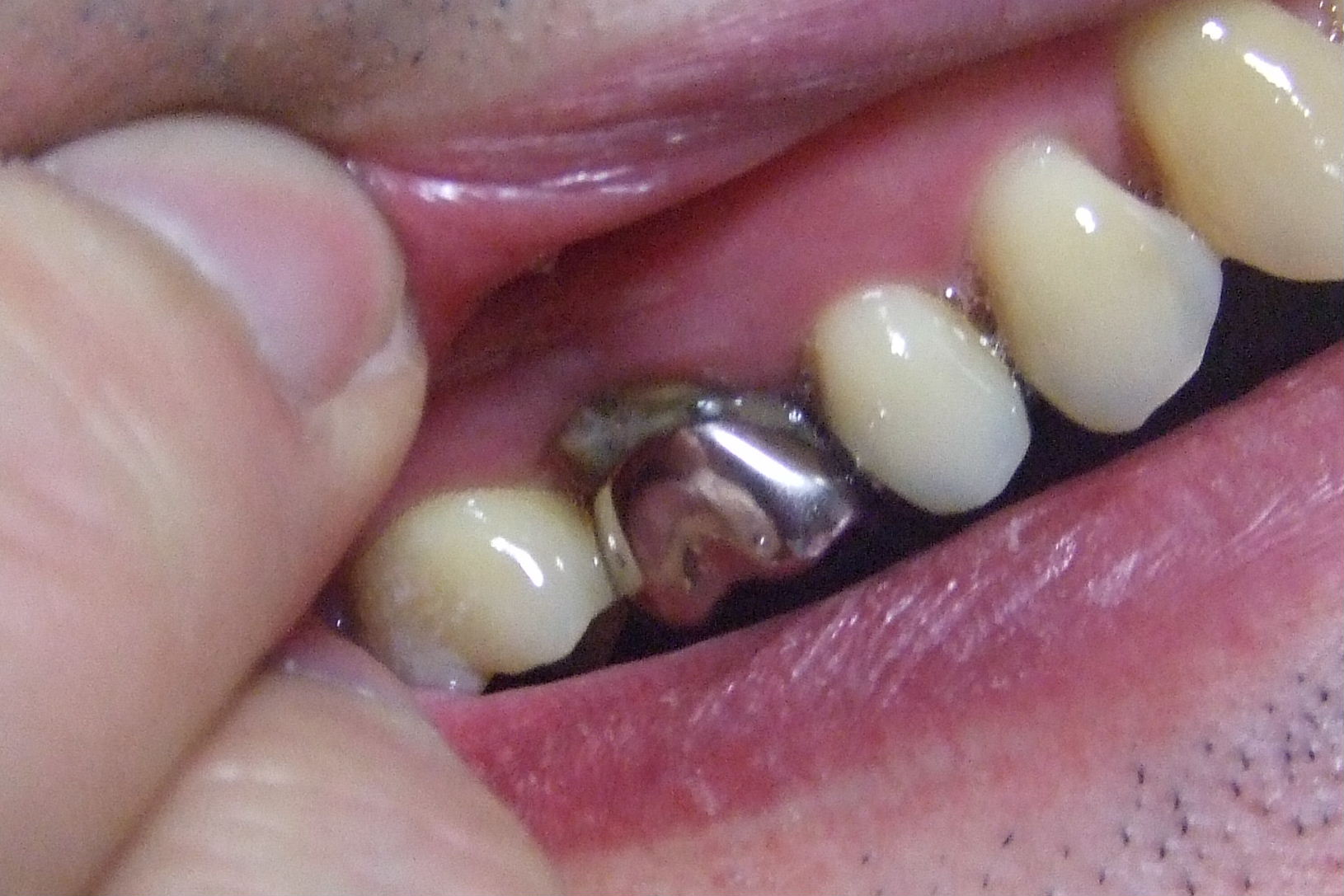 4. 歯茎が痩せていて、銀歯から歯がでてしまっている。
