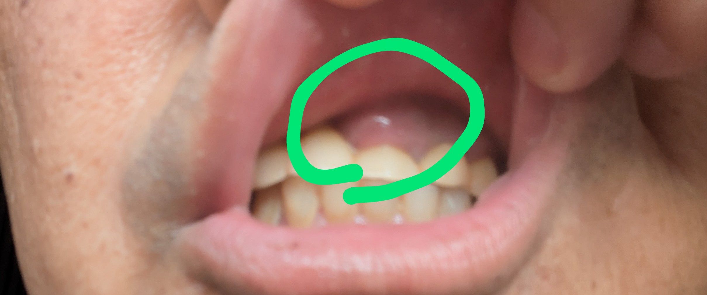 上前歯4本、連結された差し歯の歯茎の腫れと痛み