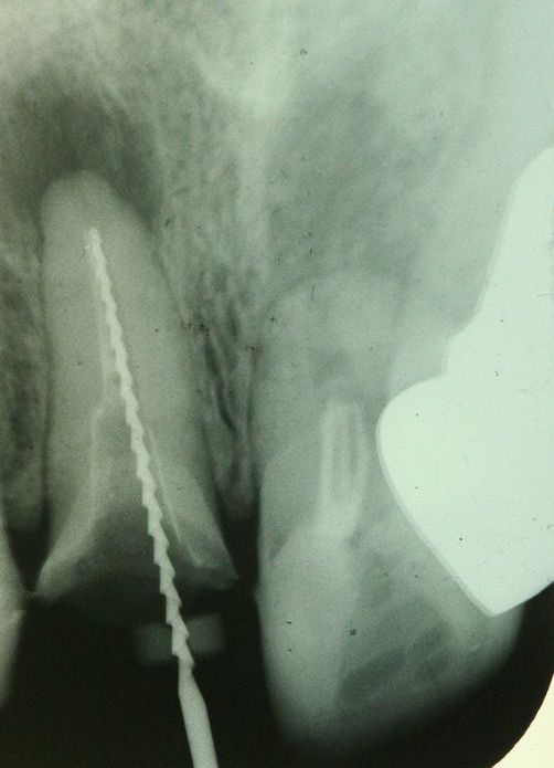 8年程前からこちらカナダの歯科担当医より、左上1の歯根が相当短くなっている事を指摘され、2006年に左上1、2、3のインプラントブリッジの治療で、5月に左上1と右上1を切り離し、左上1を抜歯。