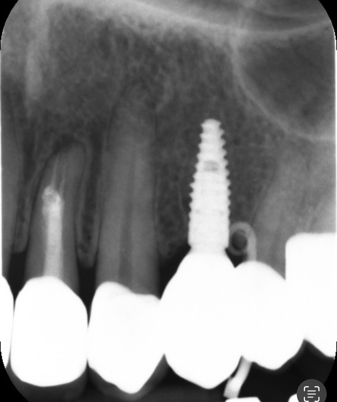 その結果、針がインプラントの手前で曲がっていたため、原因はインプラントの歯ではなく、別の歯にあるとのことでした。