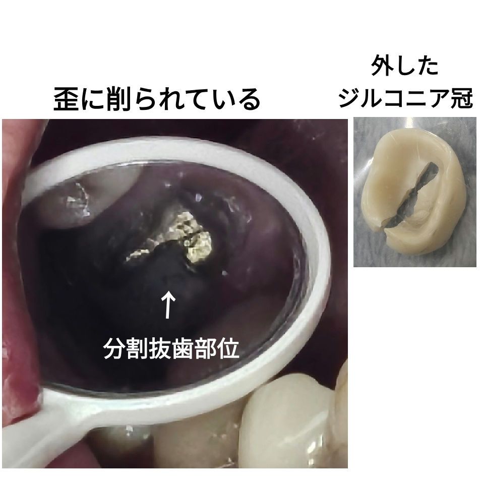 ジルコニア冠を外して土台を削って、保存不可能な歯根を抜根してもらっているのですね?
