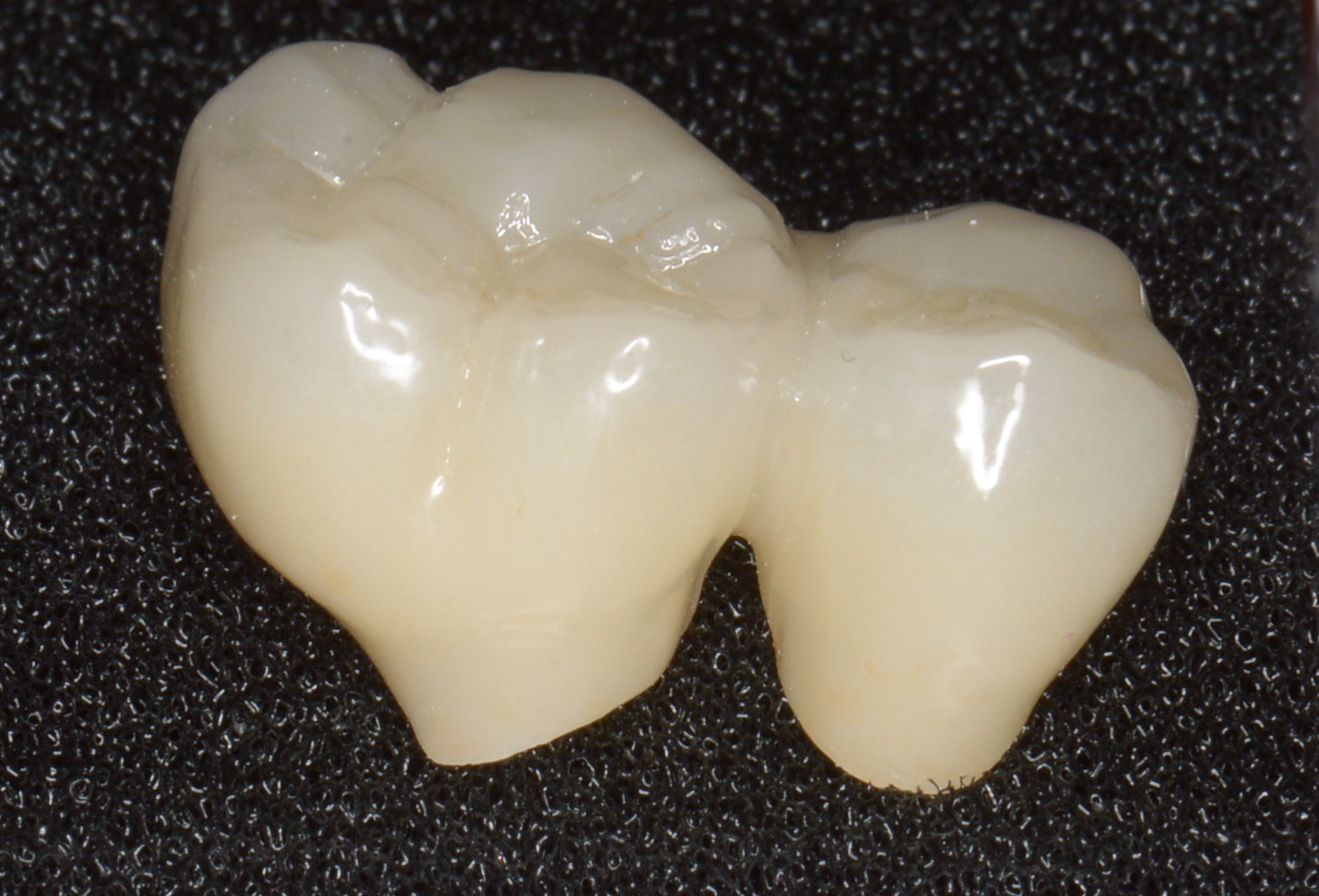 メタルコア上のジルコニアクラウンで、冠を外し無事に分割抜歯の処置を終えました。