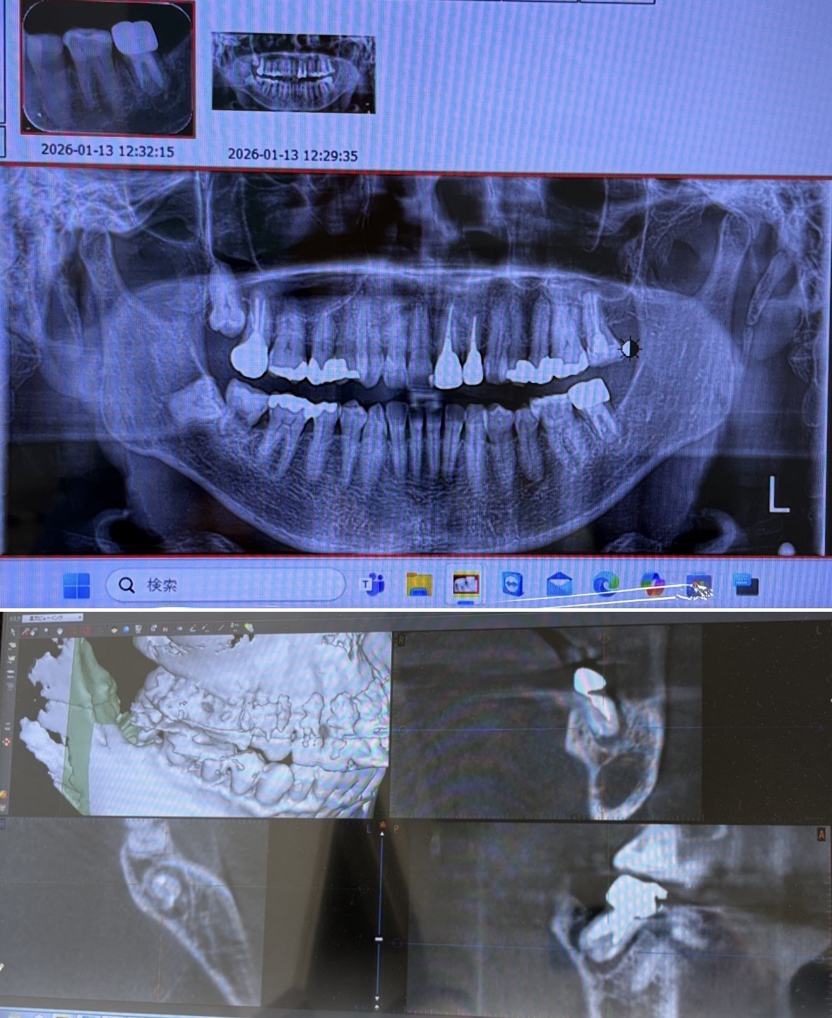 1月13日、CT持ってる歯科医院行き撮影 。