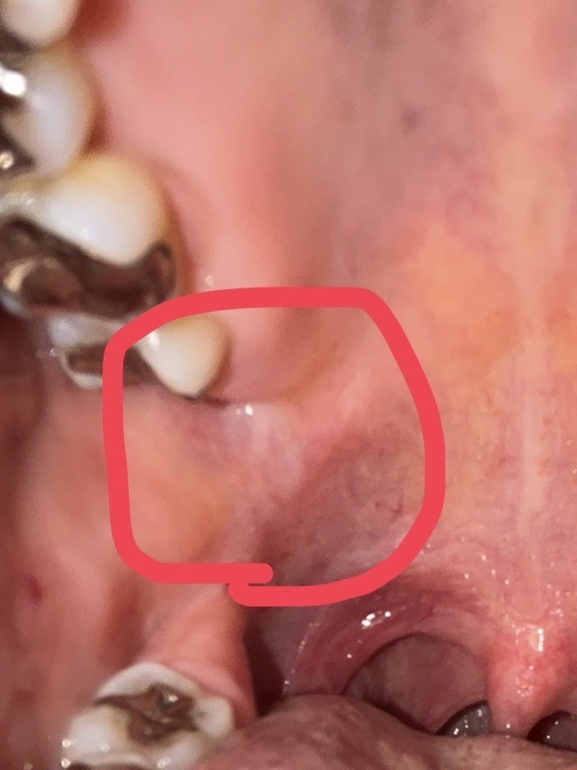 [写真あり] 歯茎の後ろが白くなっているが痛みや腫れはない