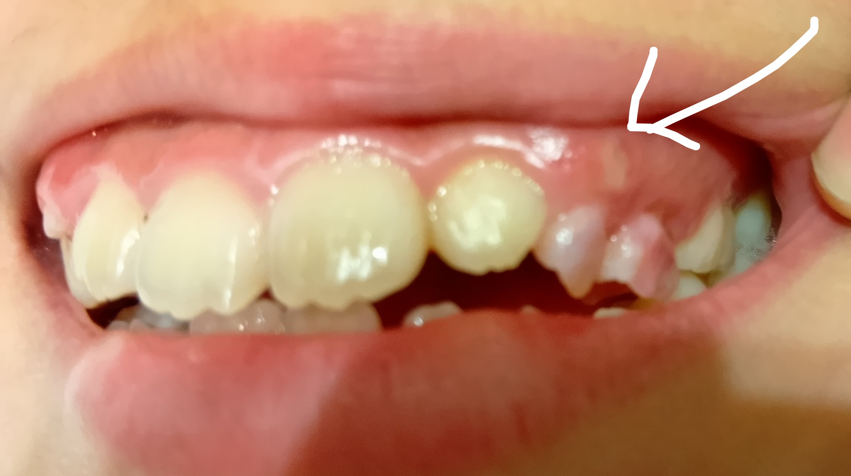 反対側は早々に抜けて永久歯が生えるまで時間があり、こちら側はなかなか抜けないうちに永久歯が見えてきてしまいました。